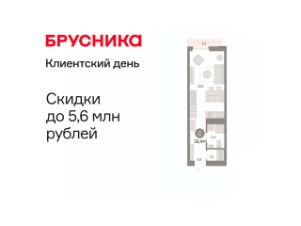 Просторная однокомнатная студия с предчистовой отделкой в ЖК "Зарека" на 6 этаже. Общая площадь: 33.38 кв.м., площадь гостиной 19.6 кв.м., из которых 5 кв.м. выделено под кухонную зону. Все окна выходят на одну сторону. В квартире один балкон, один совмещенный санузел. Высота потолков 2.7 м.