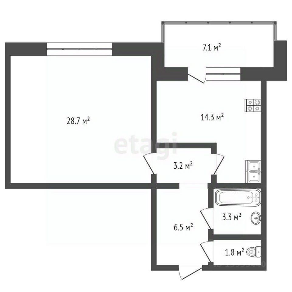 этажного дома. Комната-28,7м2, кухня-14,3м2, раздельный санузел. В