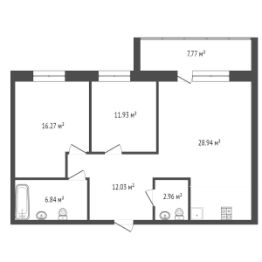 - формат 2 (2 комнаты и большая кухня-гостиная 28м2)