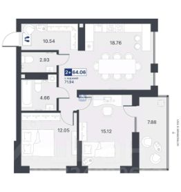 Квартира новостройка с двумя комнатами на 16 этаже 18-этажного дома доступна к продаже. Площадь квартиры составляет 64.06 кв.м., в том числе кухня занимает 18.76 кв.м. Сейчас проводится черновая отделка, что позволит новому владельцу воплотить свои дизайнерские идеи.