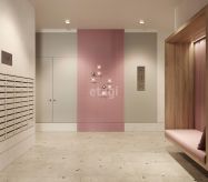 В коридоре есть ниша под большой шкафкупе или гардероб, что позволяет сэкономить пространство и создать функциональную зону хранения без захламления основного помещения.