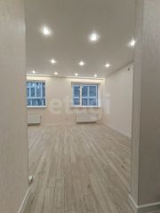 Ремонт выполнен в светлых, нейтральных тонах — стены, пол и потолок создают чистый фон, готовый к воплощению ваших дизайнерских идей. В санузле использована крупноформатная плитка, что придаёт интерьеру современный и элегантный внешний вид, а также визуально увеличивает пространство.