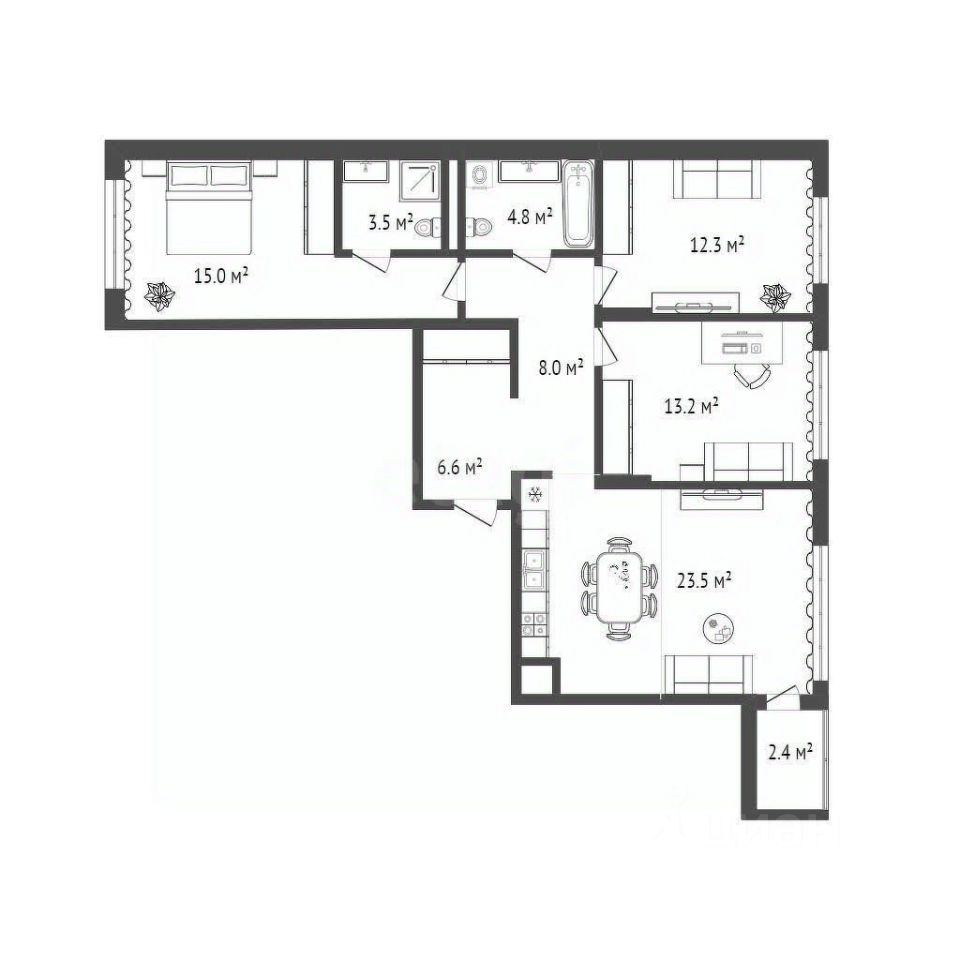 • Просторные комнаты и продуманная планировка — наша зона максимально функциональна и удобна . Продуманная планировка позволяет эффективно использовать каждый метр площади.
