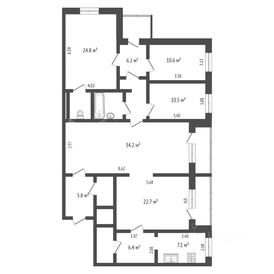 * изолированные комнаты (три спальни, гостиная и кухня-столовая);