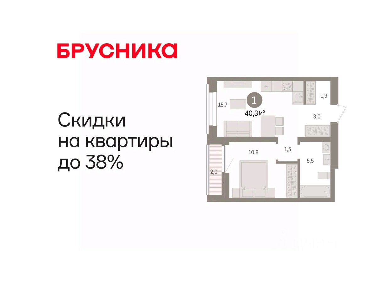 Квартира с кухней-гостиной и одной спальней в жилом районе "Речной порт". Особенности планировки: предчистовая отделка.