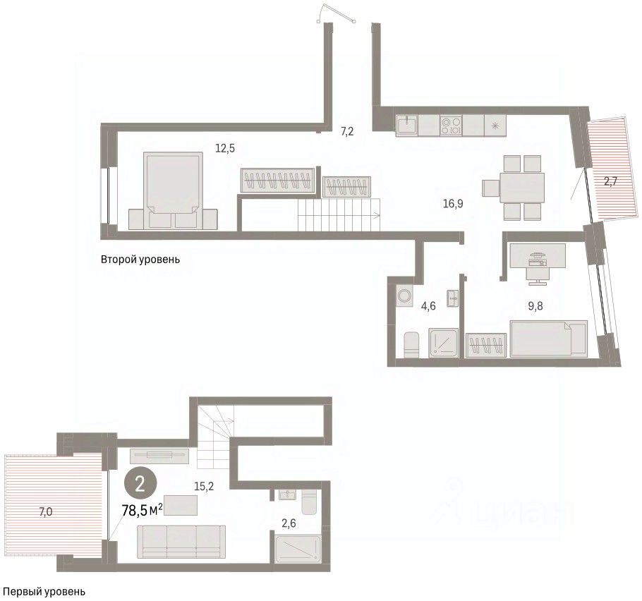 Квартира с кухней-гостиной и двумя спальнями в жилом районе "Речной порт". Особенности планировки: свободная планировка.