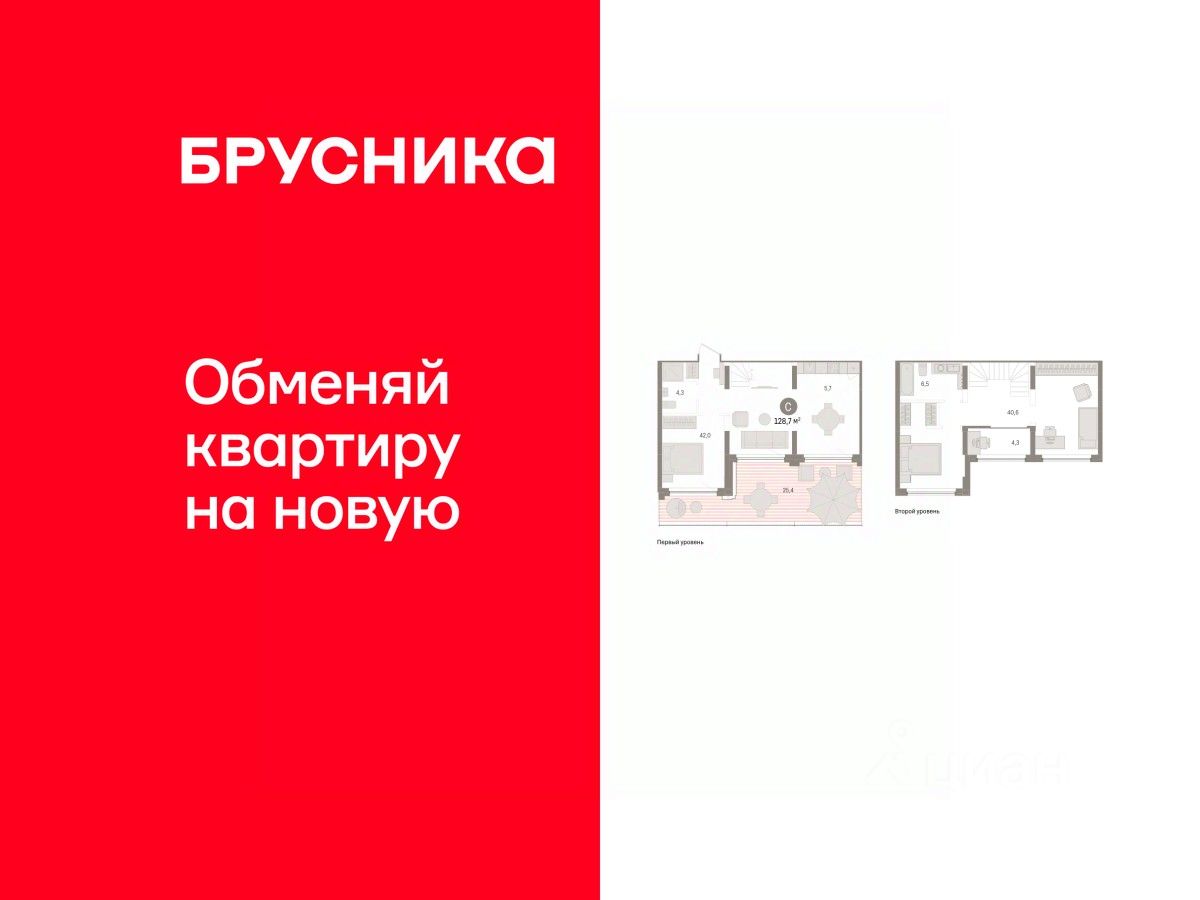 Квартира с кухней-гостиной и двумя спальнями в жилом районе "Речной порт". Особенности планировки: двухуровневая, свободная планировка, терраса на крыше, тёплая лоджия.