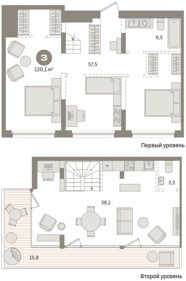 Квартира с кухней-гостиной и двумя спальнями в жилом районе "Речной порт". Особенности планировки: двухуровневая, панорамное остекление, свободная планировка.
