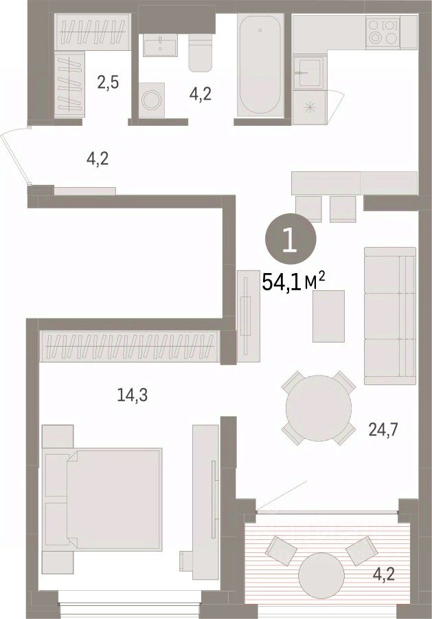 1-комн. квартира от застройщика с предчистовой отделкой в ЖК "Дом у озера" на 5 этаже. Общая площадь: 54.11 кв.м., жилая: 14.3 кв.м., площадь просторной кухни-гостиной: 24.7 кв.м. Все окна выходят на одну сторону. В квартире одна лоджия, один совмещенный санузел. Высота потолков 2.7 м.