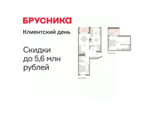 Квартира с кухней-гостиной и одной спальней в Доме у озера. Особенности планировки: предчистовая отделка.