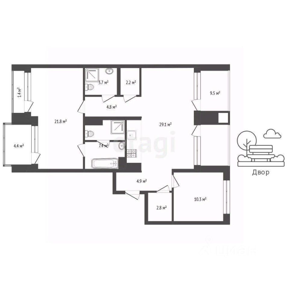 Квартира с отделкой под чистовую. Это наиболее удобный для покупателей формат. Все грязные, пыльные, шумные работы мы уже выполнили: залили стяжку с шумо- и гидроизоляцией, выстроили ровные межкомнатные стены, развели электрику и слаботочку. Вы получаете "чистый лист", готовый к финишном ремонту и воплощению почти любых дизайнерских задумок.