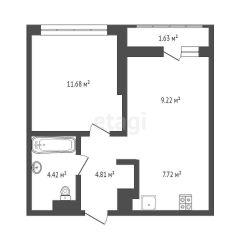Отличная 1-комнатная квартира площадью 42,65 квадратных метров, 6 этаж.