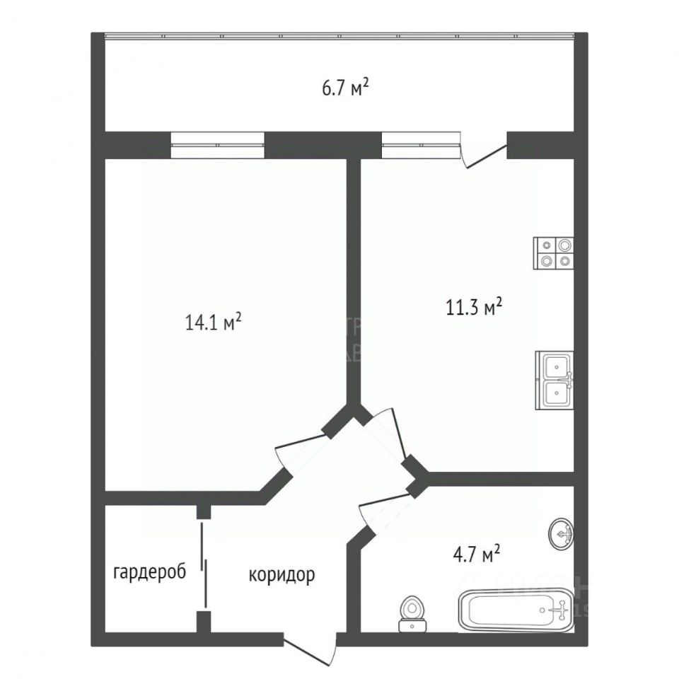 Просторная спальня, удобная кухня-гостиная, гардеробная и большой санузел с гигиеническим душем.