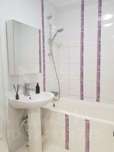 Стены выровнены, натяжные потолки в спальнях выглядят стильно и современно. В интерьере использована декоративная штукатурка, обои в спальнях и качественная плитка в санузле. Везде установлен тёплый ламинат на пробковой подложке — тепло и тишина в каждом шаге!