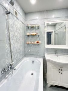 Квартира расположена в кирпичном доме и выполнен косметический ремонт. Здесь установлены пластиковые окна (балкон тоже), натяжные потолки, новые обои и двери. Обновлена электропроводка. Новый кухонный гарнитур со встроенной техникой остаётся в квартире, а также водонагреватель. При необходимости можем оставить мебель.