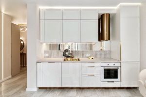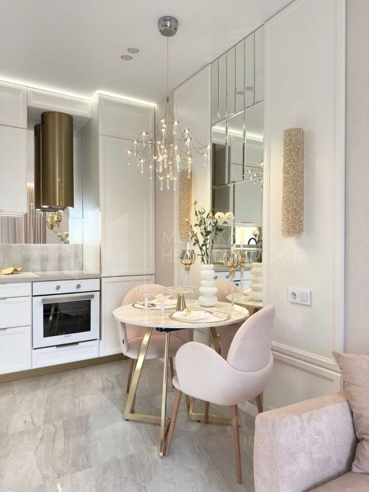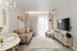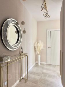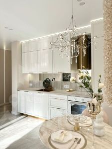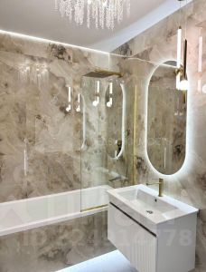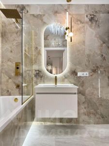 Ремонт сделан в оттенках стильный беж/тауп . Также продуман технический дизайн , установлены датчики протечки , освещение и техника включается по голосу и в приложении .
