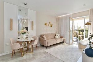Панорамные окна с видом на соловьиную рощу, заливают квартиру солнечным светом, создавая атмосферу уюта и простора.