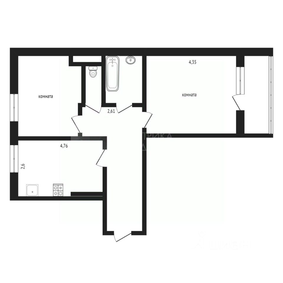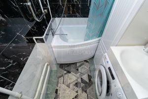 Двухкомнатная квартира площадью 50,6 кв.м на тринадцатом этаже семнадцатиэтажного дома. Жилая площадь 23 кв.м. Распашонка. Окна выходят на две стороны (во двор и на улицу). Кухня 9 кв. м, комнаты изолированные, правильной формы, одна из комнат с выходом на лоджию. Санузел раздельный. Высота потолков 2,8 м.
