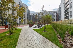 Закрытый двор, современные детские и спортивные площадки, сквозной вход в подъезд с уровня земли, рядом располагается многоуровневая парковка. На первых этажах располагаются коммерческие помещения, все необходимое будет рядом с домом. Каждый двор оснащен красивыми и современными скамейками, трехуровневыми системами освещения. На детских и спортивных площадках уложено специальное покрытие из экологически чистых материалов. Искусственный холмистый рельеф и группы вечнозеленых растений обеспечивают дворам живой и яркий образ в любое время года. На территории высажены деревья-длинномеры: это позволяет Гранд Кварталу создать естественный природный ландшафт.