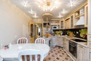 Сердце дома — кухня: Просторная кухня 14 м² — это место, где легко собираться всей семьей и принимать гостей. Она уже оборудована всей необходимой мебелью, так что вы можете сразу начинать готовить.