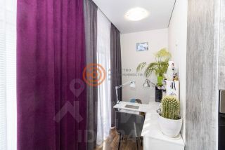 При продаже остается современный кухонный гарнитур, встроенные шкафы-купе и даже текстиль по договоренности.