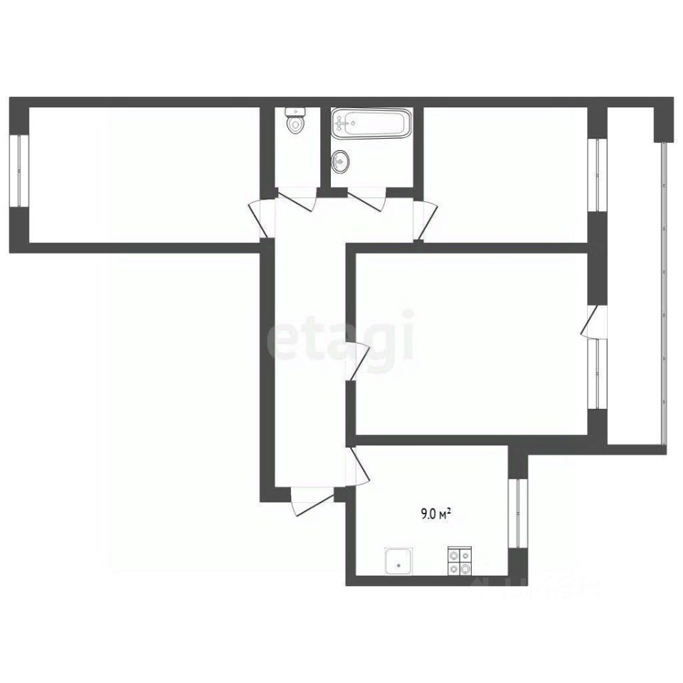 Идеальная планировка: Изолированные комнаты и светлая кухня-гостиная.