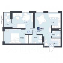 Просторная и светлая квартира в новом жилом комплексе на 9 этаже 13-этажного дома общей площадью 63.12 кв.м. В квартире 2 комнаты и просторная кухня площадью 22.57 кв.м. Черновая отделка позволит новым владельцам воплотить в жизнь свои дизайнерские идеи и создать уютное и стильное жилье.