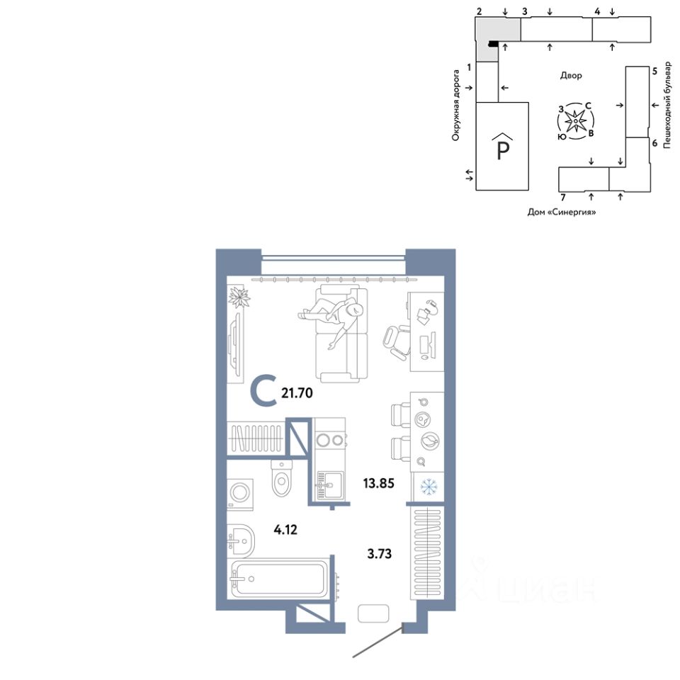 Продается студия на 11 этаже от застройщика Страна Девелопмент. Площадь квартиры 21,7 кв. м.