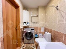 Санузел отделан современной керамической плиткой, а в прихожей и кухне уложено практичное напольное покрытие, простое в уходе.
