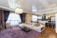 Современная квартира формата 3+ в отличном состоянии, расположенная в развитом районе с полной социальной и транспортной инфраструктурой. Ключевым преимуществом объекта является продуманная и просторная планировка. Центром притяжения служит объединенная кухня-гостиная площадью 58 м², идеально подходящая для жизни и приема гостей. При продаже остается качественный кухонный гарнитур со встроенной техникой премиум-класса: варочной панелью, духовым шкафом и посудомоечной машиной. Помимо двух изолированных спален, в квартире предусмотрен кабинет, совмещенный с гардеробной зоной, что создает дополнительные возможности для организации пространства. Уникальной особенностью является зимний сад с панорамным остеклением, открывающий вид на ухоженный пруд и обеспечивающий обилие естественного света.
