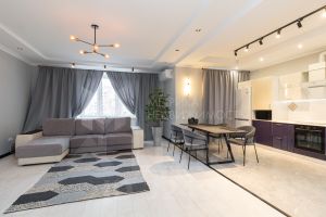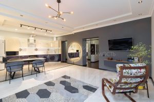 Кухня объединена с просторной гостиной (39,9 кв.м.!!!) Ключевым преимуществом являются две лоджии: компактная для хранения (2,4 кв.м) с выходом из кухни и большая квадратная лоджия (9,3 кв. м!!!), объединенная со спальней, что позволяет её использовать как рабочий кабинет, детскую зону или пространство для отдыха.