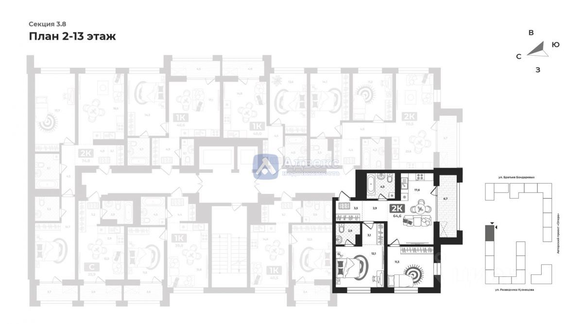 Дома разной высоты от 9 до 23 этажей позволяют впустить во двор больше света. Двор закрыт от машин и поделён на 2 зоны. В активной — детские площадки для разных возрастов и место для спорта с большим теннисным кортом. Тихая зона создана для отдыха.