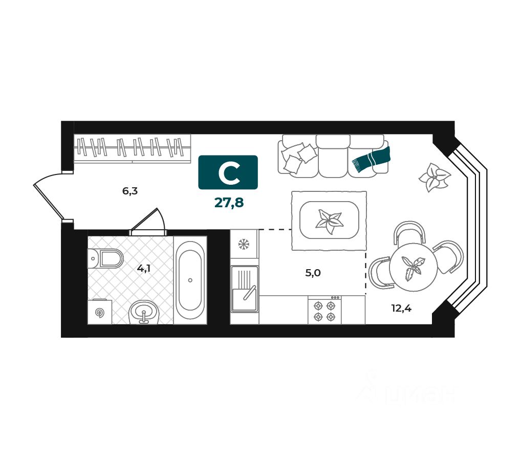 Продаётся студия в строящемся доме (ГП-1 (Тимофея Кармацкого, 18)), срок сдачи: III-кв. 2028, общей площадью 27.8 кв.м., на 8 этаже. Новый жилой комплекс от Специализированного застройщика "ИНКО" расположен по адресу: г. Тюмень по ул. Евгения Войнова.