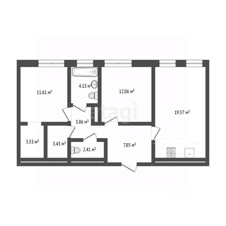 Площадь кухни19 м²