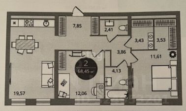 Общая площадь68,2 м²