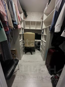 В спальне произвели зонирование и сделали гардеробную, освободив всю квартиру от лишних шкафов, это сейчас очень актуально!