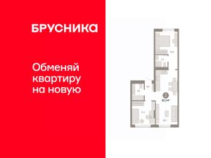 Квартира с кухней-гостиной и двумя спальнями в Октябрьском на Туре. Особенности планировки: предчистовая отделка, разнесённые спальни.