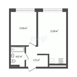 Кухня гостинная 21,5 кв.м, спальня 13,5 кв.м., просторный сан. узел 4 кв.м, ниша под гардеробную. Удобный 2й этаж.