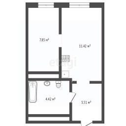 Удачная и функциональная планировка для студии - прихожая, совмещённый санузел, кухня с выделенной зоной отдыха и изолированная зона спальни.