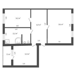 Продается просторная двухкомнатная квартира с большой кухней, общей площадью 81,3 м2.