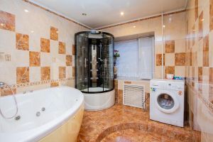 В квартире сделан современный ремонт. Напольное покрытие-паркетная доска . В спальне и кухне пробковое покрытие на полу. На стенах наклеены обои под покраску. Совмещенный просторный санузел выложен плиткой.