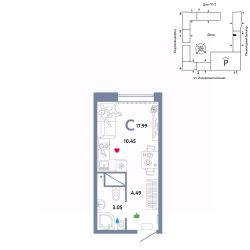 Продается 0комнатная квартира в новом ЖК "Юнион". Общая площадь квартиры 17,99 кв. м. Сдача — в 3 квартале 2024 года.