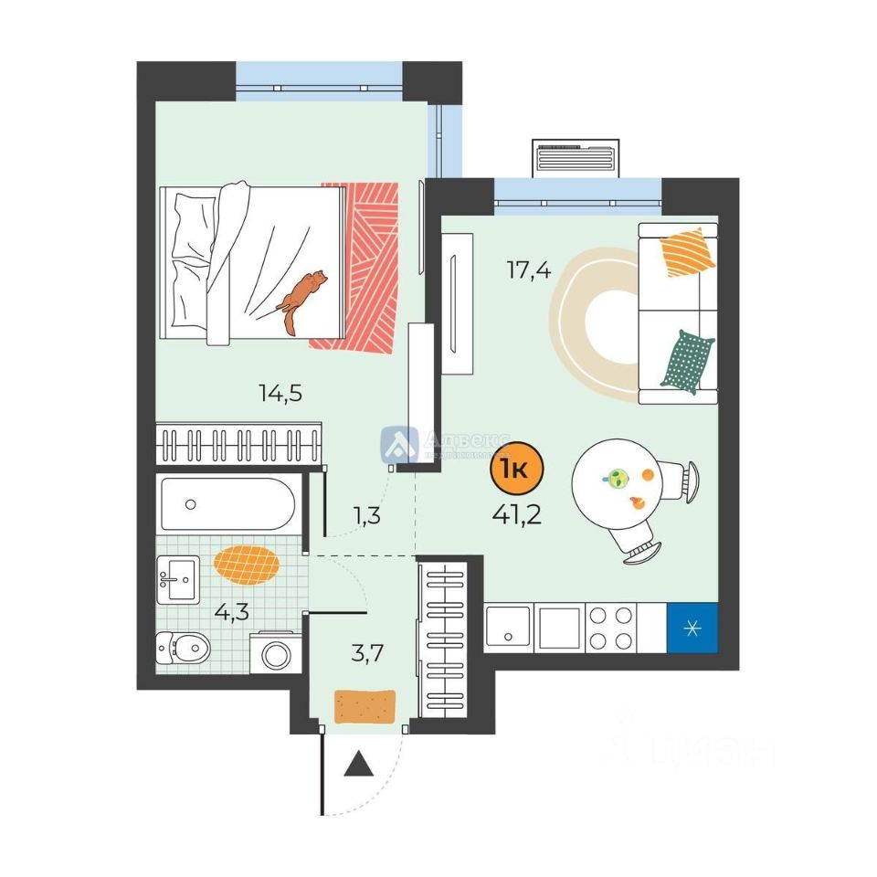 ЖК Корней - идеальное место для тех, кто ценит комфорт и удобство. Новостройка расположена на 9 этаже 10-этажного дома и предлагает просторную квартиру площадью 41.20 кв.м. Кухня занимает 17.4 кв.м., что позволит вам удобно расположить мебель и бытовую технику.