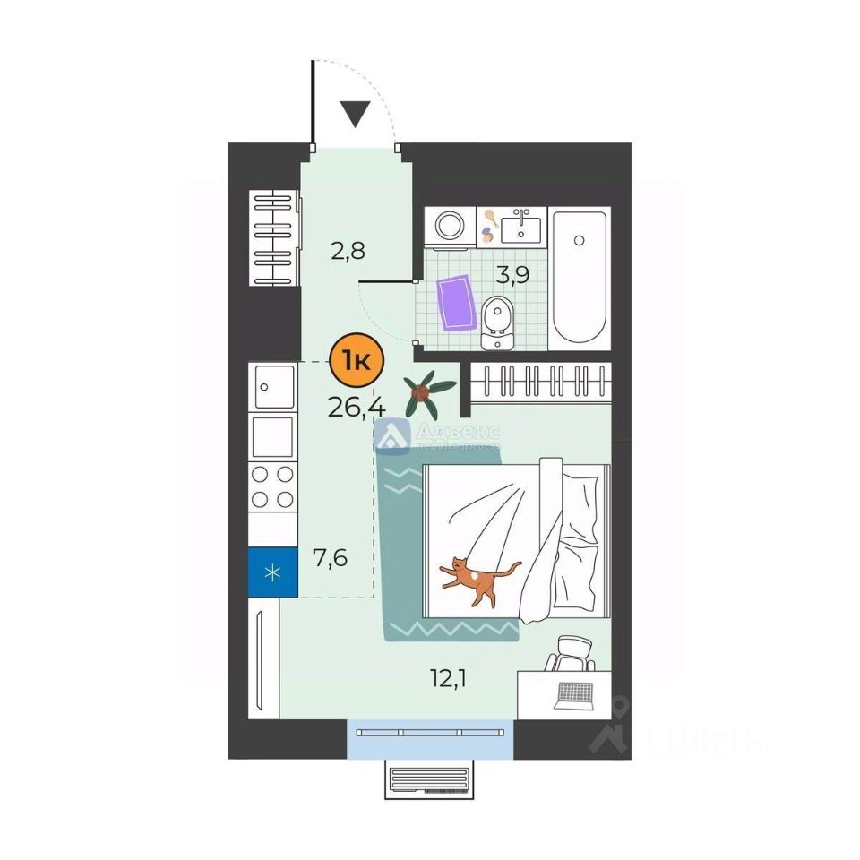 Благоприятное расположение дома и развитая инфраструктура района делают это жилье привлекательным для молодых людей и студентов