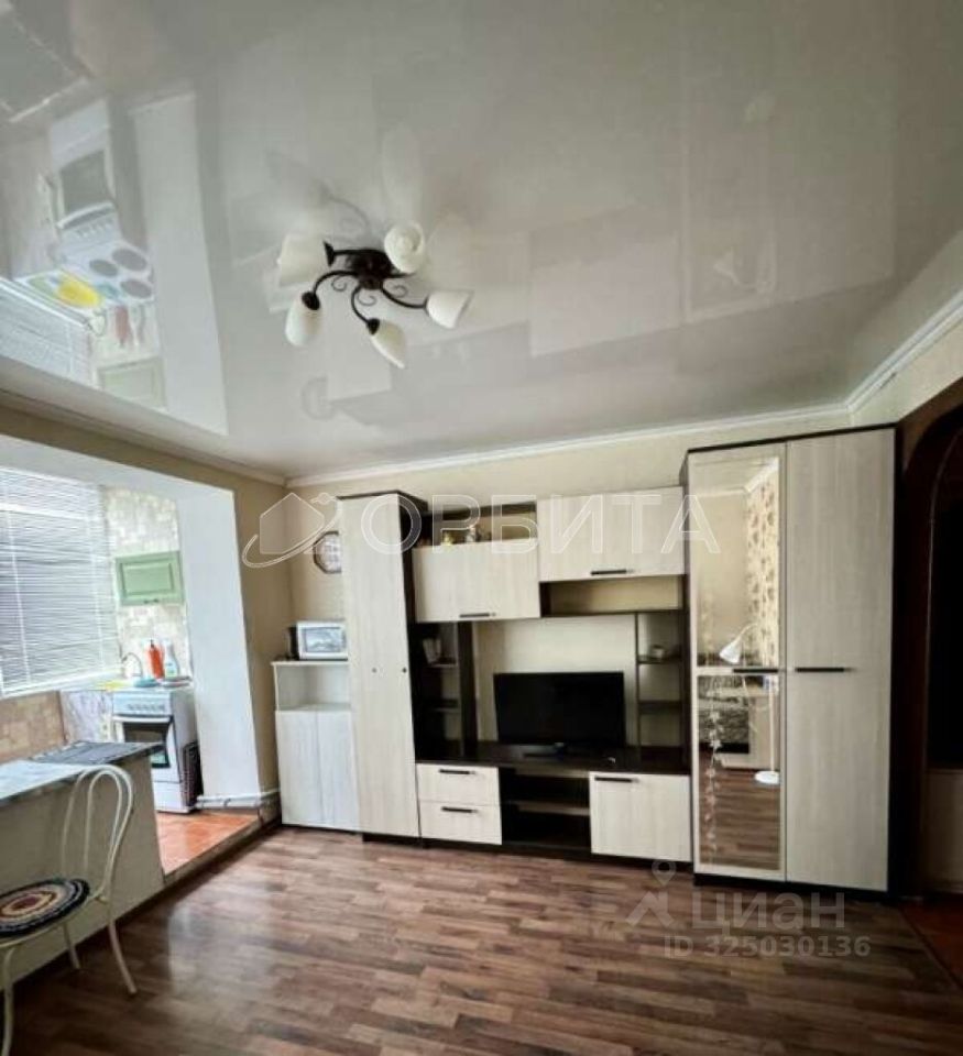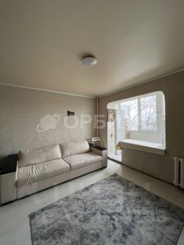 В квартире выполнен косметический ремонт, имеются натяжные потолки. Лоджия застеклена большими пластиковыми окнами и оборудована под кухню. Санузел совмещен. В квартире остается вся мебель и техника (кроме морозильной камеры и телевизора).