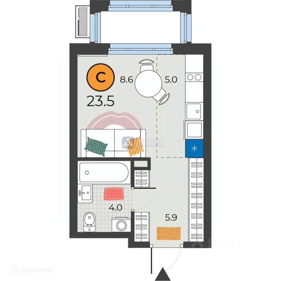 23.50 кв.м. площади позволяют вам с комфортом обустроить свое пространство, оставив место как для отдыха, так и для работы. Кухня площадью 5 кв.м. позволит вам готовить свои любимые блюда, не ограничивая себя в кулинарных экспериментах.