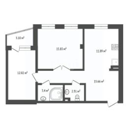 Планировка гармоничная и функциональная. Общая площадь 61,4 м² грамотно распределена между изолированными помещениями, что обеспечивает комфорт для проживания семьи.