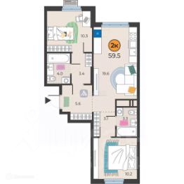 Площадь 59.50 кв.м. позволит разместить все необходимое для комфортного проживания семьи.