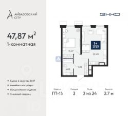 Квартира расположена на 2 этаже 24-этажного дома, что обеспечивает отличный вид из окон и удобный доступ к своему жилищу. Площадь квартиры составляет 47.87 кв.м., из них кухня занимает 22.49 кв.м. Это идеальный вариант для тех, кому важен комфорт и функциональность жилья.