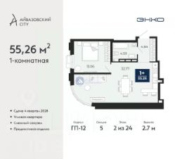 Квартира расположена на 3 этаже 24-этажного дома, что обеспечивает прекрасный вид из окон на окружающий пейзаж. Площадь квартиры 55.26 кв.м., что создает комфортное пространство для жизни. Отдельно стоит выделить кухню площадью 32.77 кв.м., где легко можно организовать приятные посиделки с друзьями или приготовление вкусных блюд.